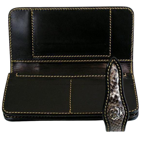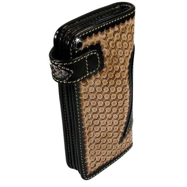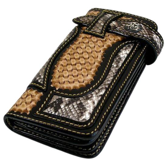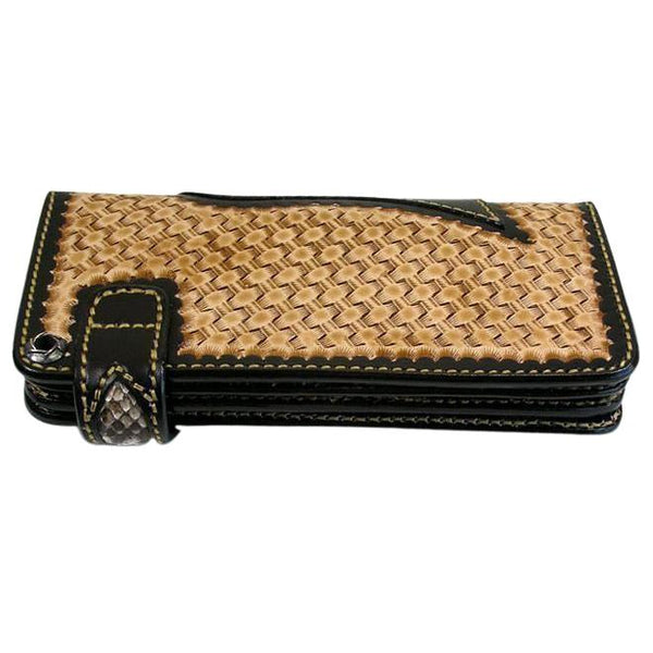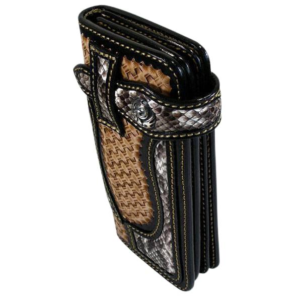 TRIBAL SNAKE SKIN WITH WOVEN BROWN GENUINE LEATHER BIKER WALLET ~NEW