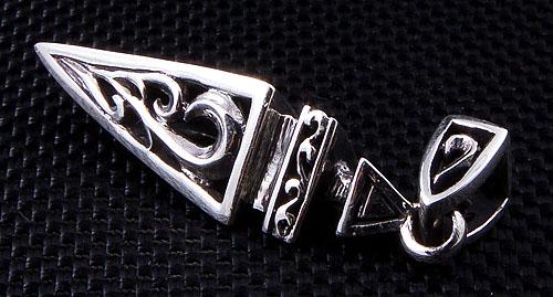 Our Spike Pyramid Silver Pendant will become your talisman if you believe in its protective properties. Not only is it able to become your totem but also a stylish and elegant accessory. You will be enchanted and engrossed with swirly patterns placed at every side of the pyramid along with the top detail and originally-shaped loop. The pendant is made by hand from quality sterling silver.