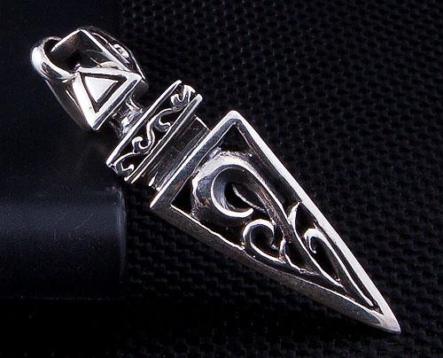TRIBAL ROCKER SPIKE PYRAMID STERLING SILVER MENS PENDANT ~NEW
