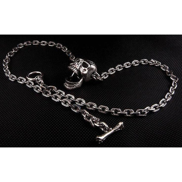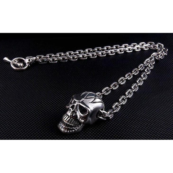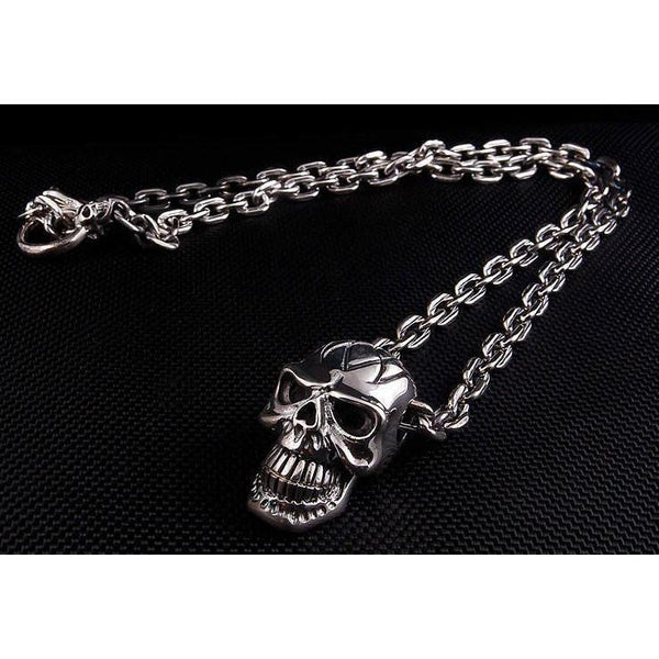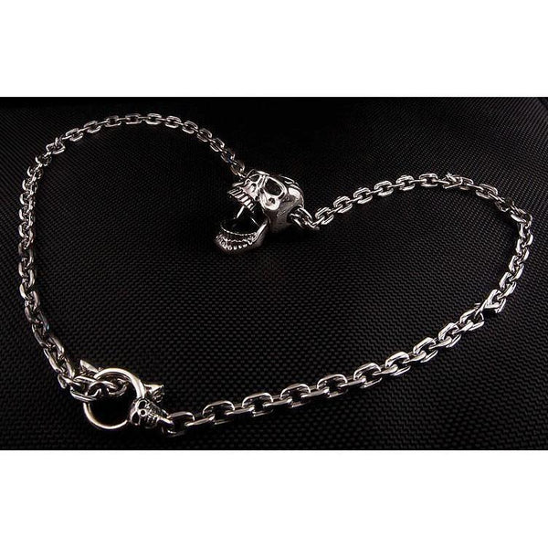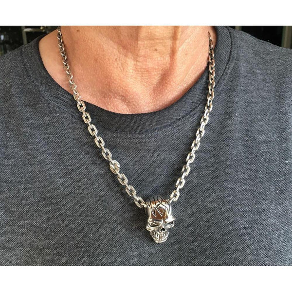 Sterling Silver Big Head Skull Chain Necklace