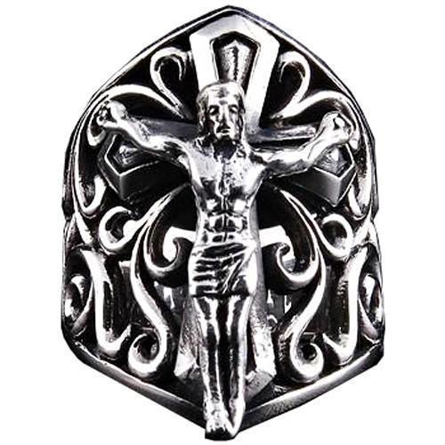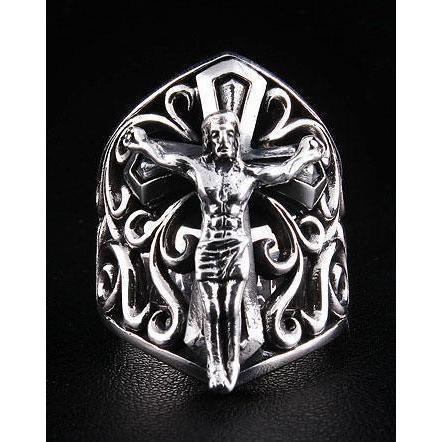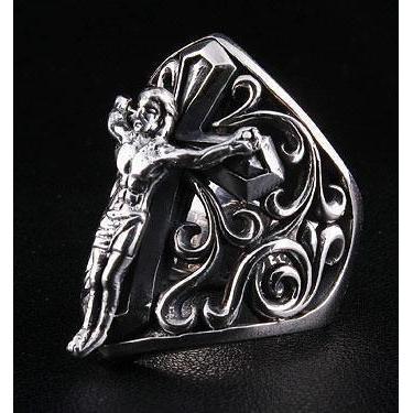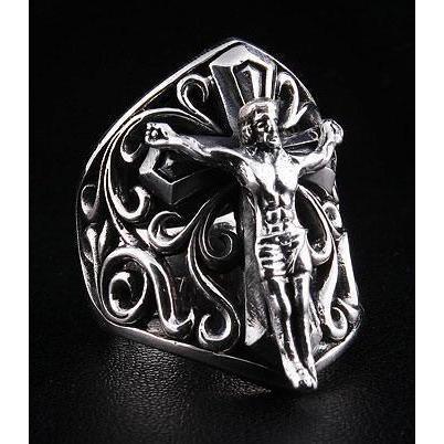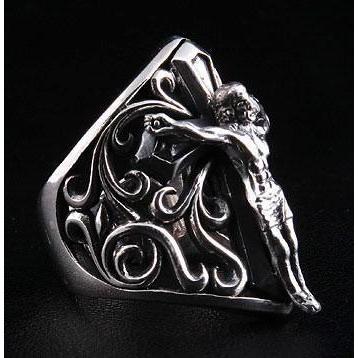 On the front of the ring, Jesus is displayed pinned to the cross as told in the Bible, with detailed swirls behind him. This ring has been created by a master craftsman using heavy sterling silver and has stamped the trademark .925 stamp on the inside of the band to reassure you of its quality as well as authenticity.