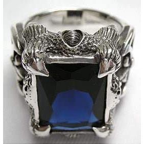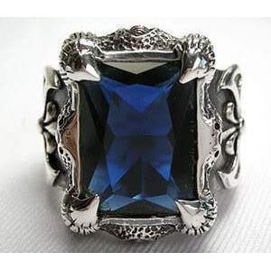 DRAGON CLAW & AXE SAPPHIRE BLUE STONE SOLID 925 STERLING SILVER MEN'S RING