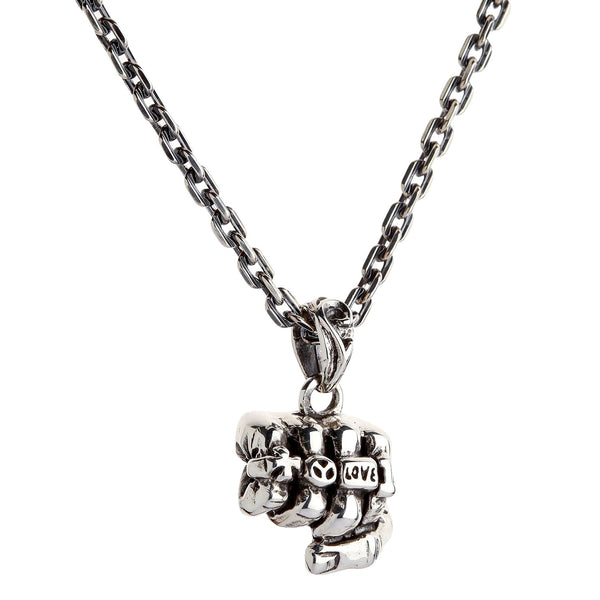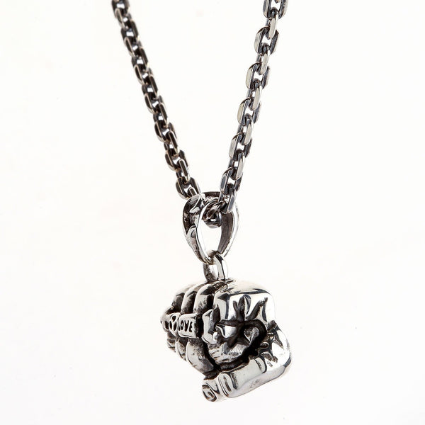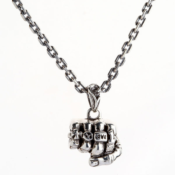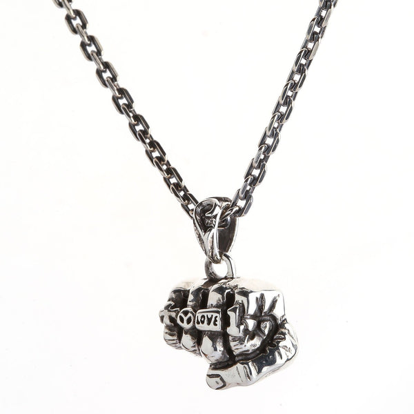 Sterling Silver Biker Fist Pendant Necklace
