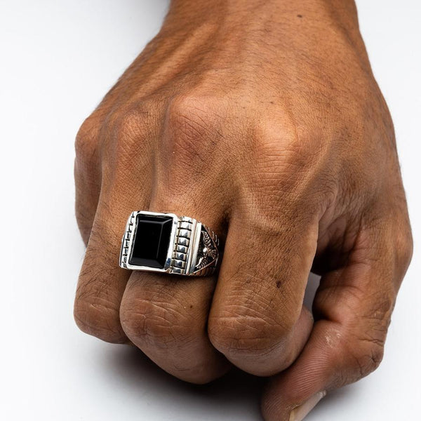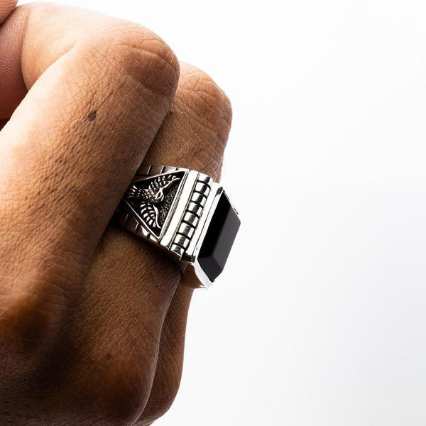 Made from sterling silver, with a large black onyx in the middle, taking up most of the ring face of 23mm by 19mm, and a nice carving of an eagle on the sides, this is a ring most men would love to wear.
