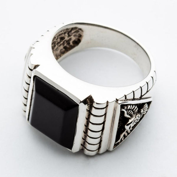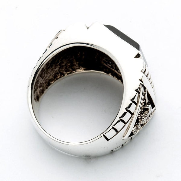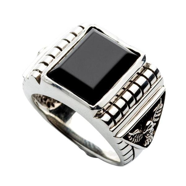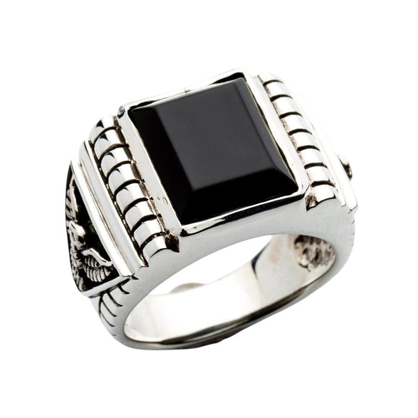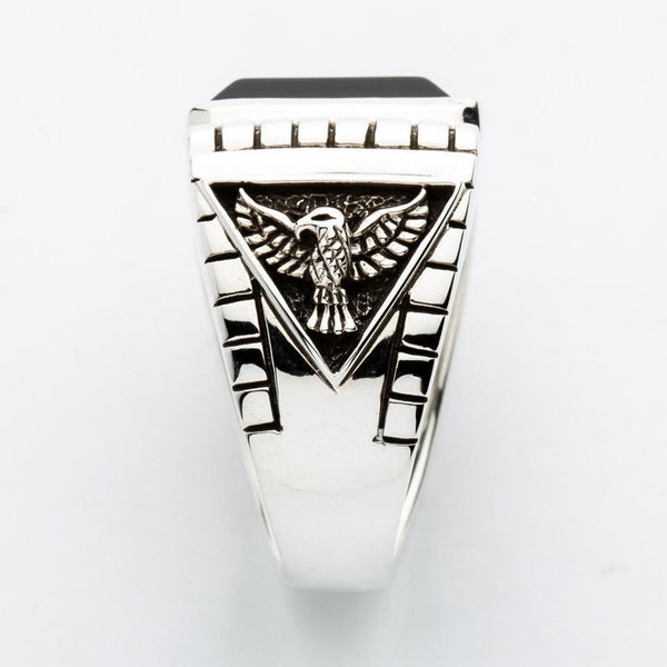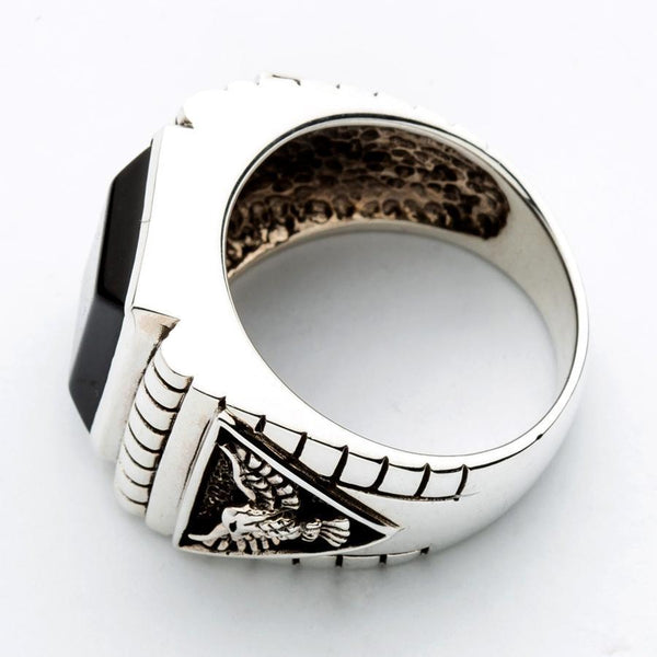 Sterling Silver Black Onyx Eagle Mens Ring