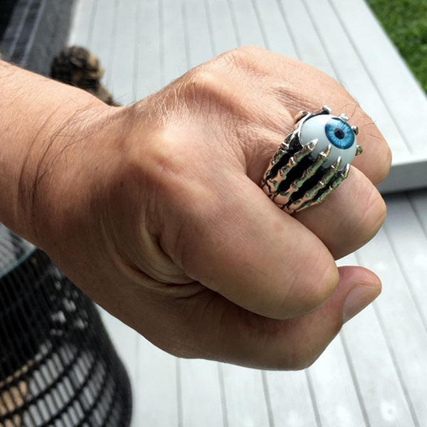 Bold and eye-catching, this ring is one that will appeal to anyone with an interest in science fiction. The eyeballs impressive glare stands, uninterrupted, and follows you around the room. Alongside this, the pointed and skeleton fingers grip their find strongly - seemingly refusing to let it go in any circumstance. This piece is one for the man looking to break the mould when choosing unique and striking accessories.
