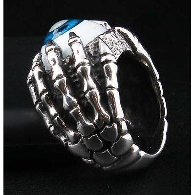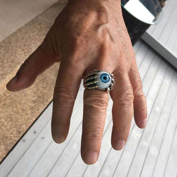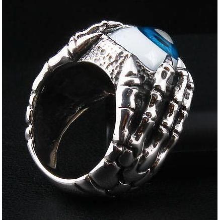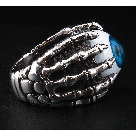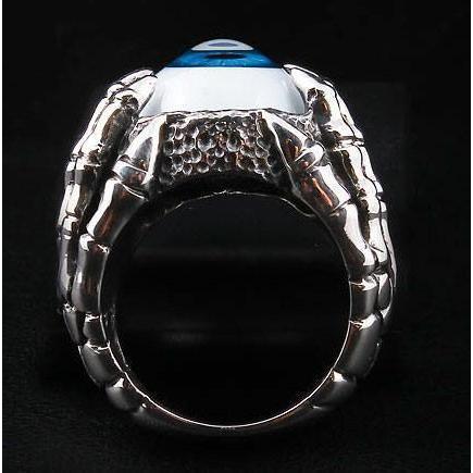 Blue eyeball claw sterling silver gothic ring ~brand new