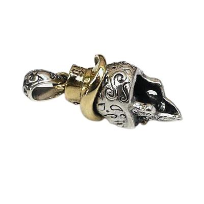STEAMPUNK SKULL BRASS & 925 STERLING SILVER PENDANT NEW
