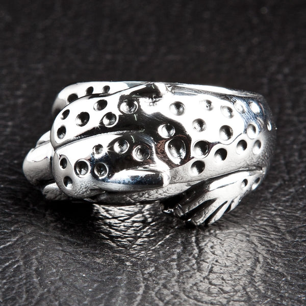 The determined eyes and proud jaw come courtesy of our master silversmith, who has an incredible talent for turning our solid sterling silver bands into magnificent works of art. Carving intricate detail, including the many cheetah spots, before polishing each piece to a high shine finish, this ring has been completed with the .925 trademark stamp to prove authenticity.