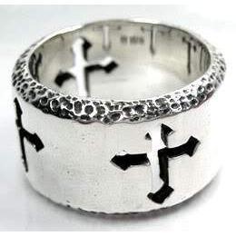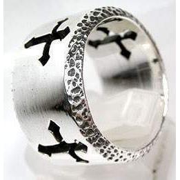 Silver bands offer a versatile design that looks equally awesome in the office and at a motorcycle rally. Its smooth, carefully polished surface will suit any clothing style whether you prefer classic, casual, or daring. Despite being simplistic in its design, it is far from being boring. We added a couple of elements that refresh its refined look. First of all, its edge is deliberately rugged and darkened to introduce a contrasting texture and color. The main highlight is, however, three perforated crosses cut through the thickness of silver. Such an original design plays with depth and creates various shades of silver.