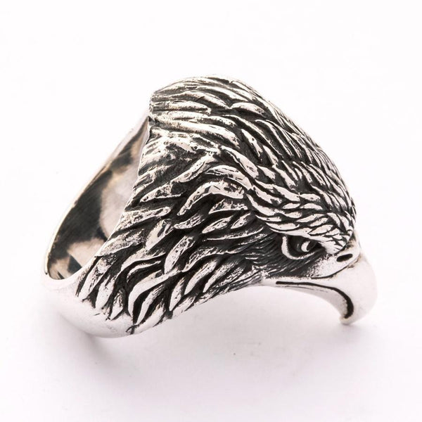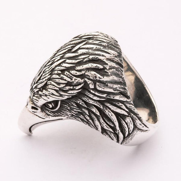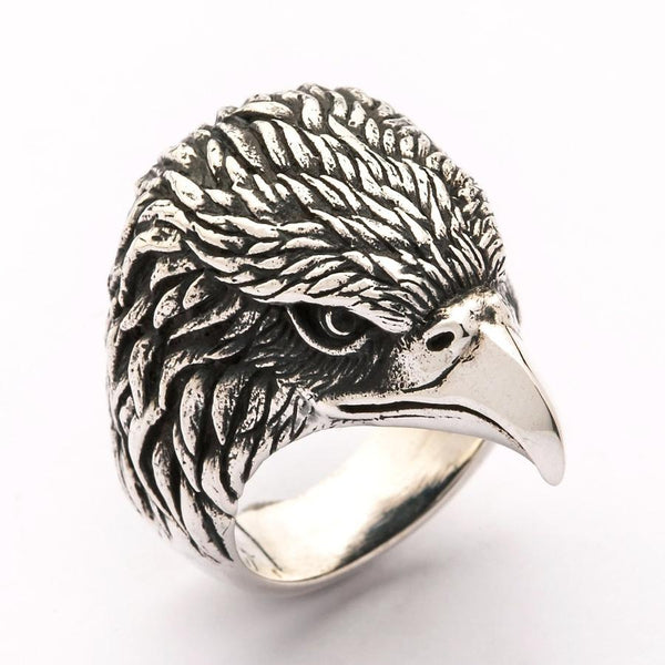 Sterling Silver Eagle Head Biker Ring