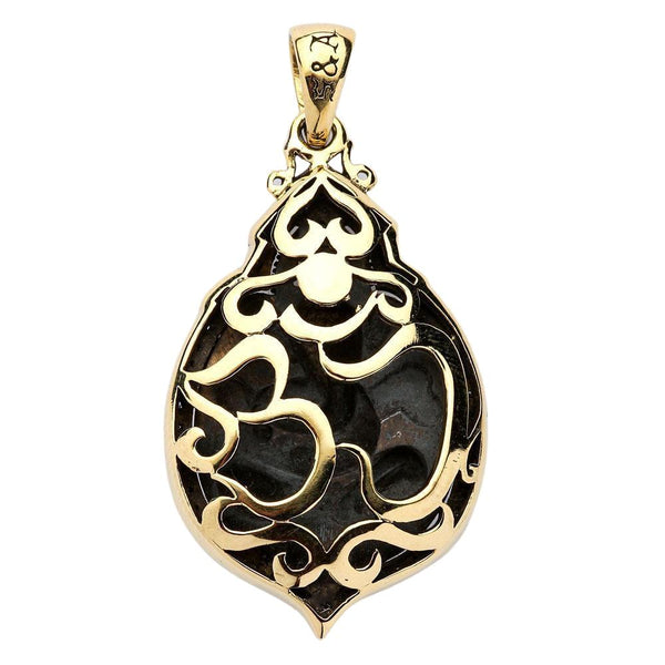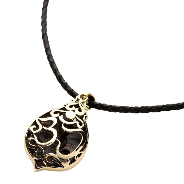 This 19g pendant sits upon an 18” black leather cord that is stylish enough to accentuate the design without distracting from the intricate detailing. This is a large, heavy piece that has been made to encourage you to focus on your goals without interference.