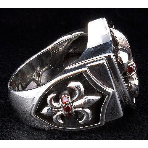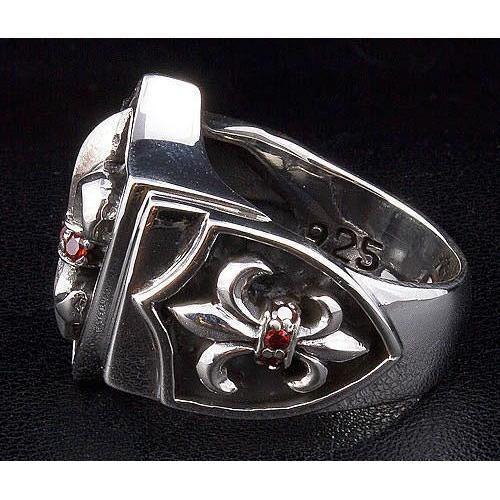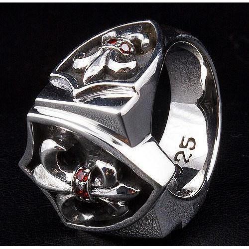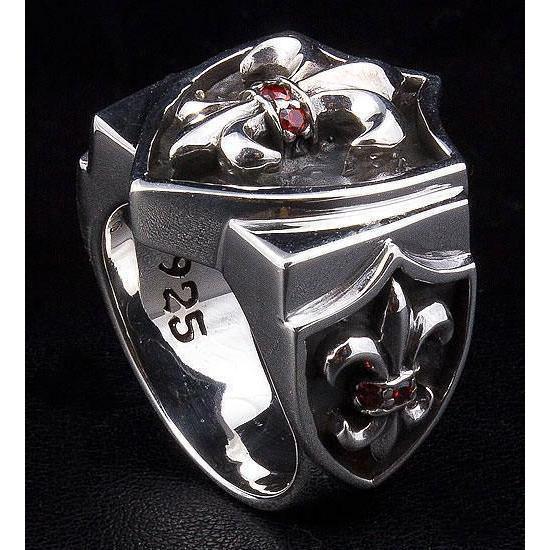 Sterling Silver Gothic Garnet Fleur De Lis Ring