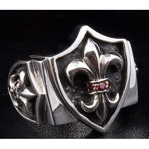 The fleur-de-lis is traditionally thought to be a symbol of light, life and perfection, attributes that can certainly be valued in this gorgeous ring. The carefully carved design is beautifully enhanced with nine genuine fire garnet stones for a unique take on this much-admired French emblem.Our master silversmith has taken great care to create a ring of beauty, using 100% solid sterling silver and gently polishing the finished band to a high-shine. This heavy, thick ring has been stamped with the .925 trademark sign to prove authenticity and quality.