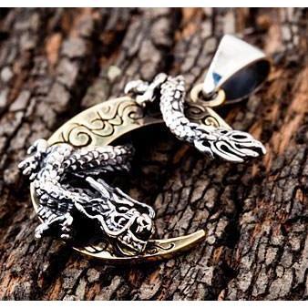 JAPANESE DRAGON MOON STERLING SILVER MENS PENDANT ~NEW