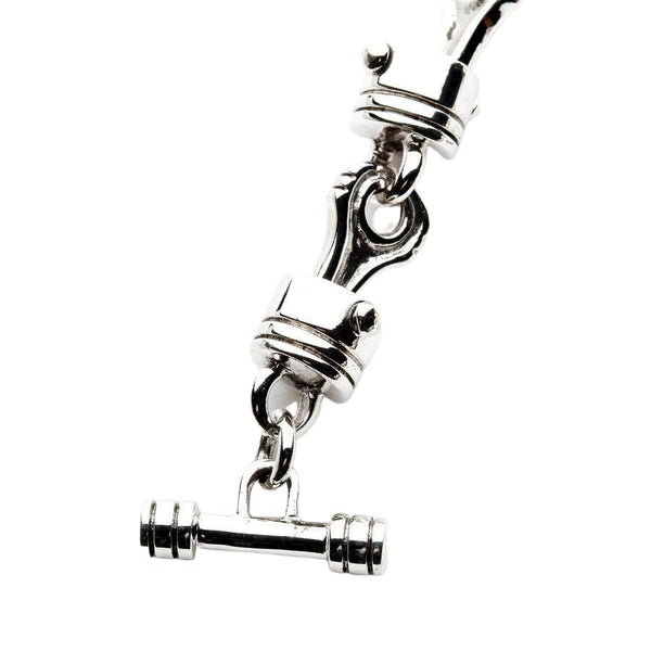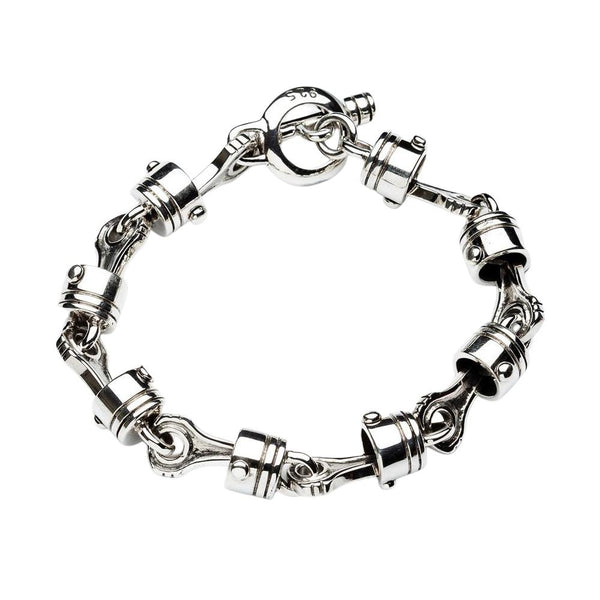 Comprised of the very best quality 100% solid sterling silver and polished for a slick sheen, our durable motorcycle piston bracelet is more than rough and ready enough to be worn both on-road or off-road.