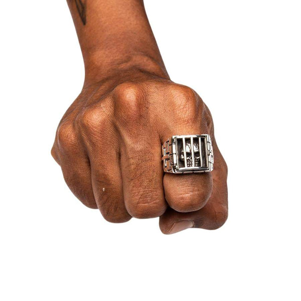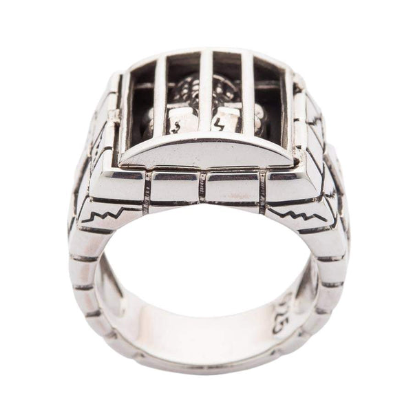 Sterling Silver Prisoner Skull Ring by Bikerringshop is one hell of a ring. It features a common biker symbol, the skull, but with it twist – the skull is kept in captivity. But this skull is very angry and furious so it cannot wait till it can break free. There are some cracks in the bricks so soon it will succeed. Unleash your inner demons with our tricksy bad-to-the-bone biker skull ring.