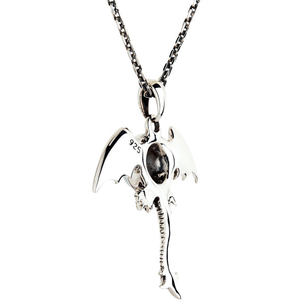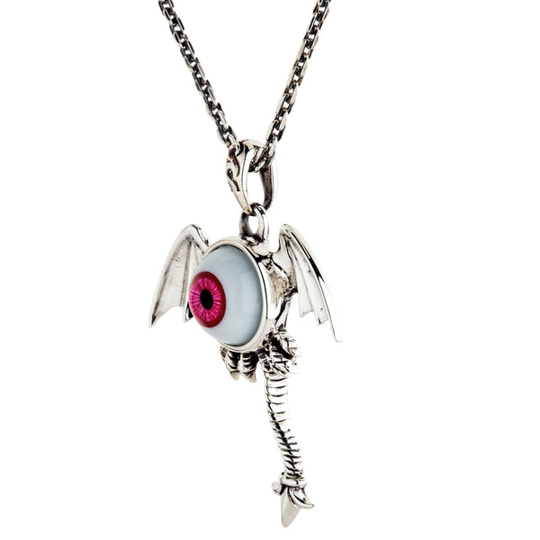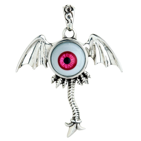 Sterling Silver Red Evil Eye Gothic Wings Pendant
