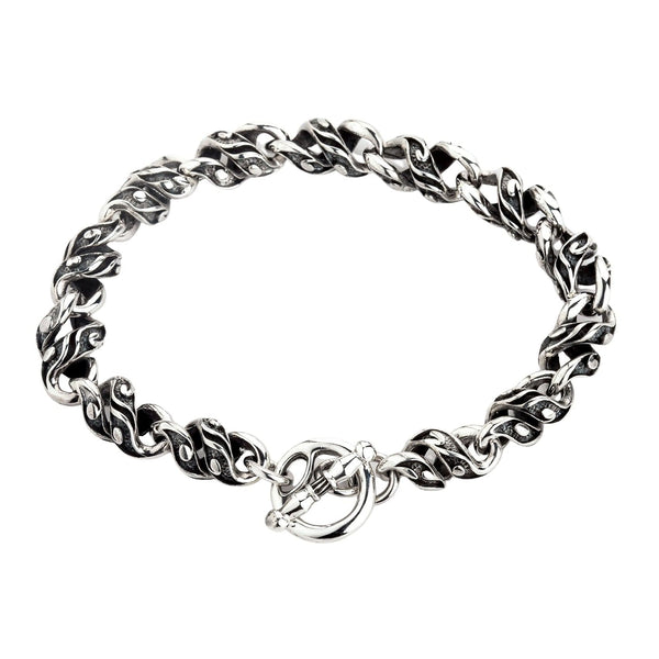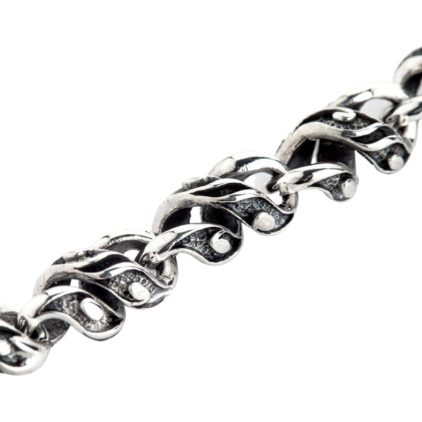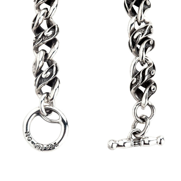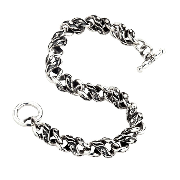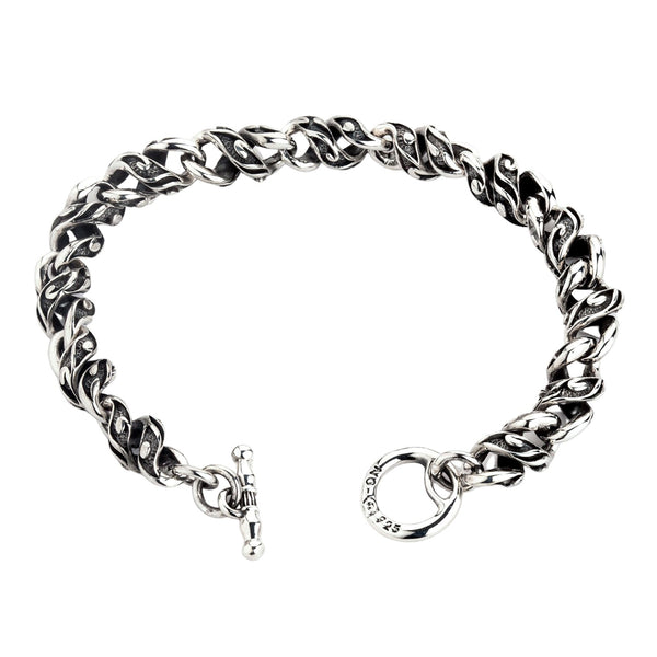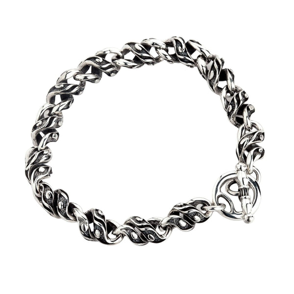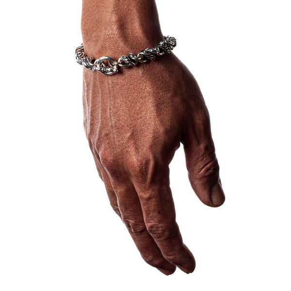 Our Sterling Silver Rope Chain Bracelet is luxuriously heavy, masculine, and rugged. At the same time, it provides exquisite rope detailing embellished with swirly patterns. This bracelet makes a perfect gift for a guy, especially if he’s into motorcycling, rock, or Gothic.