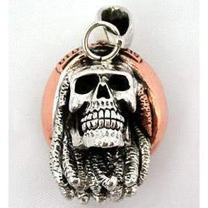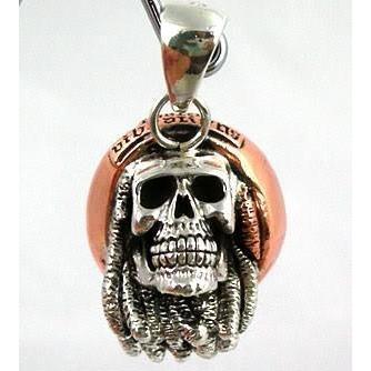 This pendant depicts the reggae legend, Bob Marley himself, with a creative twist. He is wearing his traditional hat, but as you can see his face has been replaced with a detailed skull.