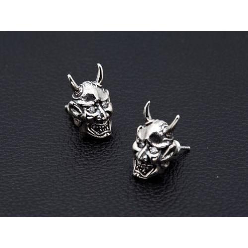 DIAMOND EYES DEVIL HEAD 925 STERLING SILVER MENS STUDS EARRINGS ~NEW