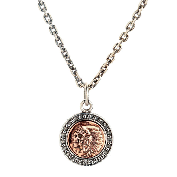 Sterling Silver Skull Indian Liberty Coin Pendant