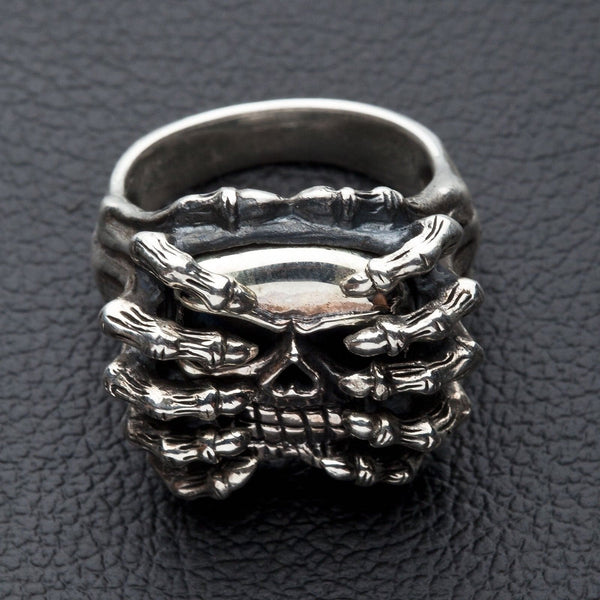 You can notice that this skull is clutched between two hands. These bony fingers resemble the legs of a spider, a creature that is equal parts creative and deadly. This image can have multiple explanations. It can represent the struggle with death, the desire to break free from shackles or something that holds you down. Be that as it may, you can give this image a meaningful interpretation. In the people’s eyes, this ring is going to be a badass enhancement for your personal style.