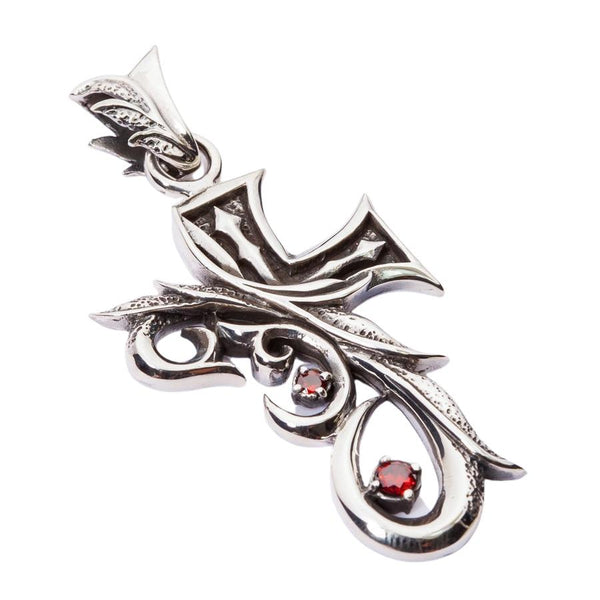 Looking for an accessory to reveal your wide side and draw in admired glances? You can count on our sterling silver tribal gothic cross pendant to become a highlight of your look. The combination of solid silver, red stone inlays, and unique design make it the right item for confident men.