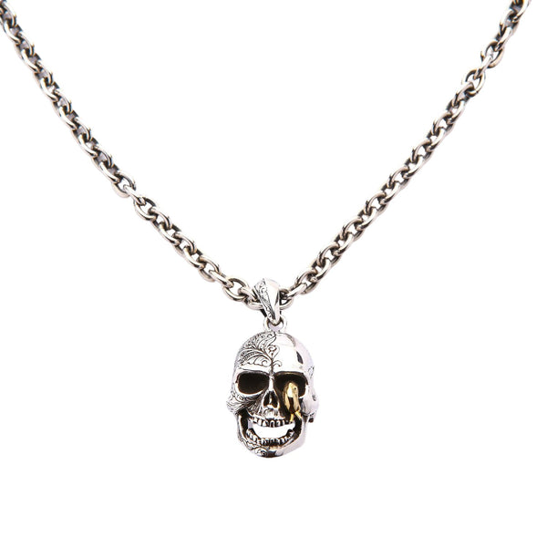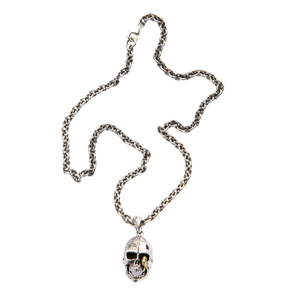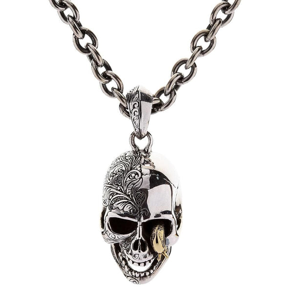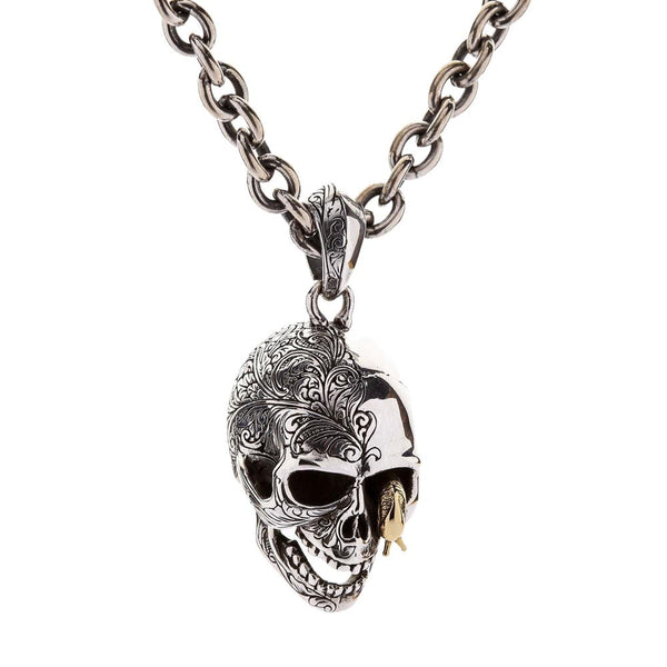 A skull is an ancient symbol of death but add a snake to it (or, in our case, it is a worm), and its meaning will do a 180-degree turn. A living creature crawling out of the eye socket symbolizes immortality and wisdom. It as if says that our knowledge and experience remain even after our death. Thanks to this meaning, this piece of jewelry becomes more than a match for thinkers, doers, and dreamers. If you enjoy bold symbolism embodied in an intriguing shape, you won’t go wrong with putting this hell of a necklace on your neck.