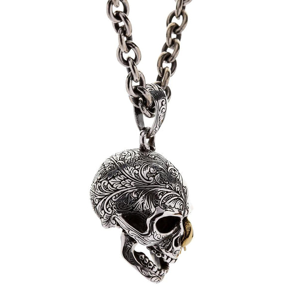 Life and death, destruction and immortality – these opposites are an innate part of the skull. We reflected this duality in intricate carvings alongside a smooth polished finish. The skull’s companion, the worm, flaunts the reddish brass finish. Every detail you see in this piece is carefully made by the hands of our talented silversmiths. A dash of individuality is what you require to build a mesmerizing look that won’t leave anyone cold.