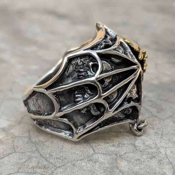 14K GOLD STERLING SILVER GOTHIC SPIDER RING ~NEW