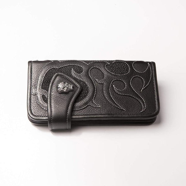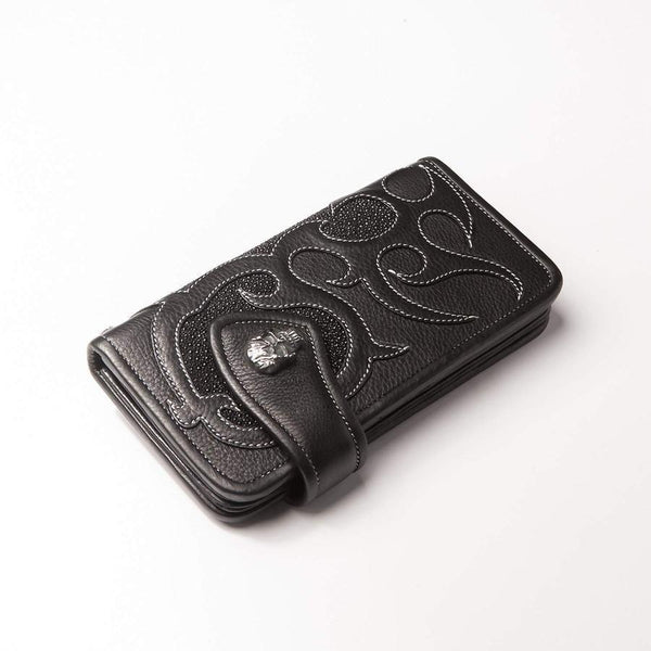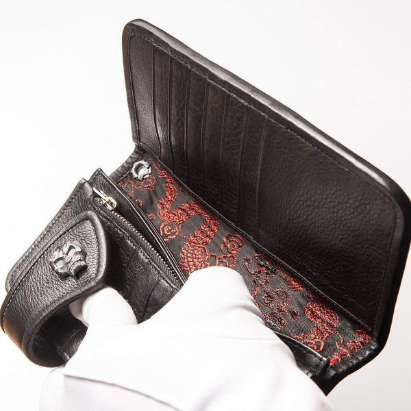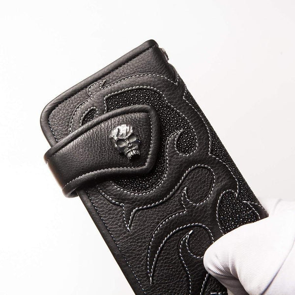Made over many hours of careful craftsmanship, our Skull Concho Long Biker Wallet will slip effortlessly into your style. Finished in a versatile black colour and edged with contrasting stitching, it has a durability to it that will last for many years to come.