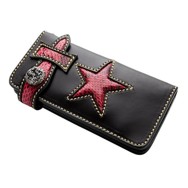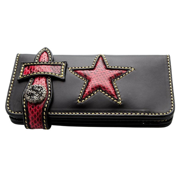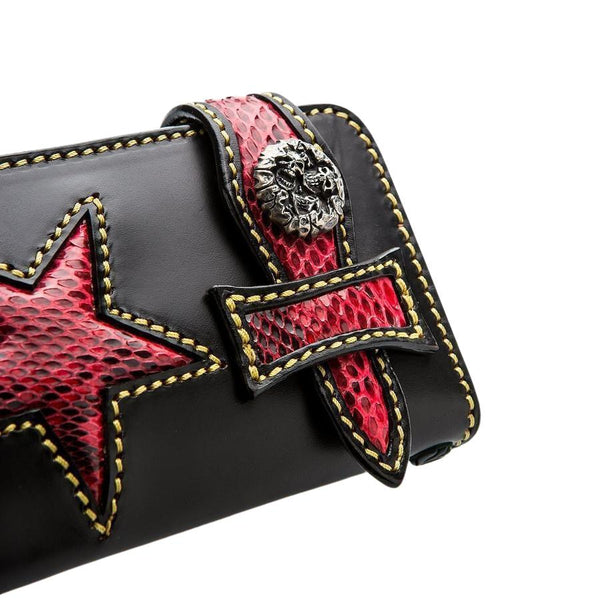 Tribal Star Red Snake Skin Biker Wallet