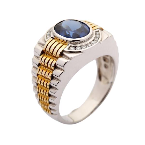 Sapphire Gold & Silver Two Tone Mens Rolex Ring