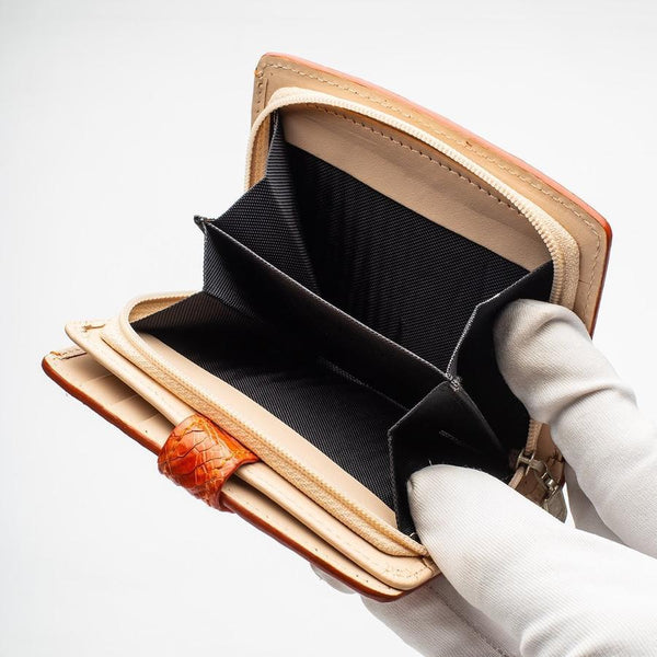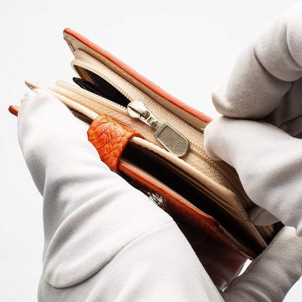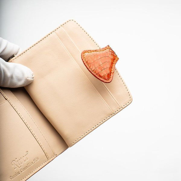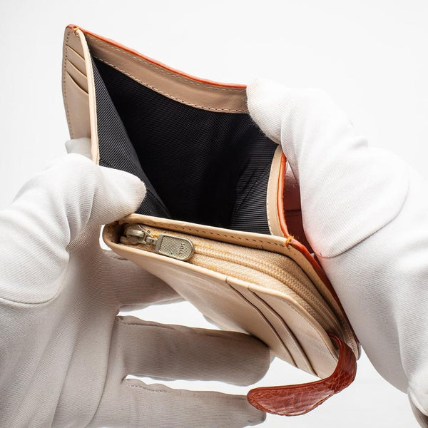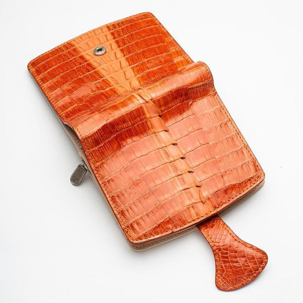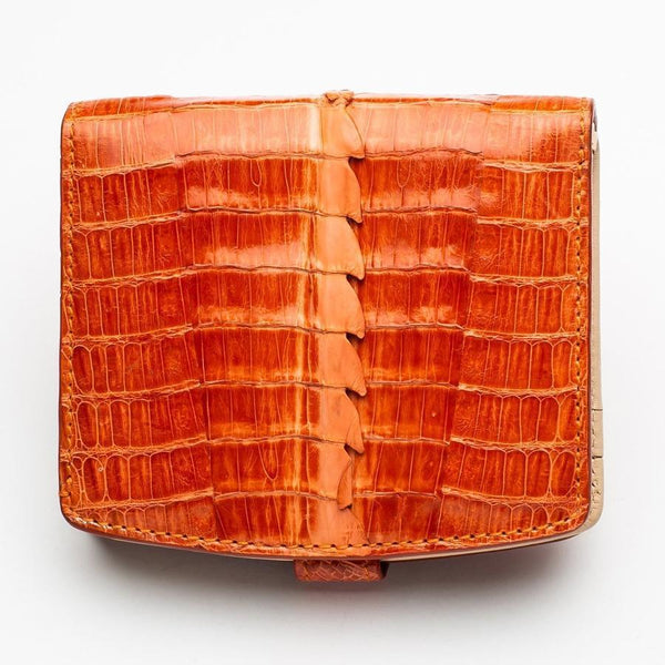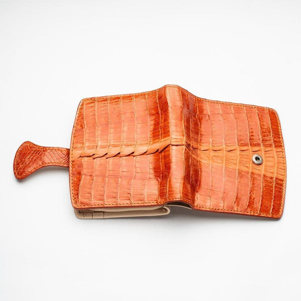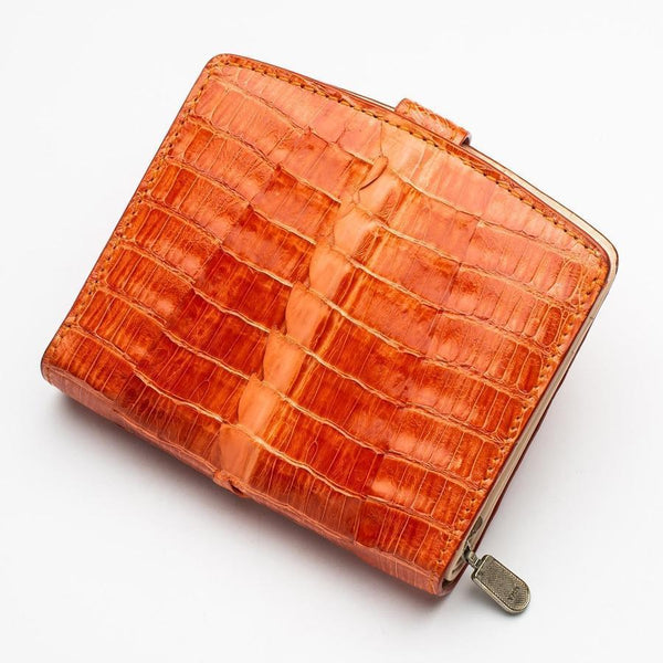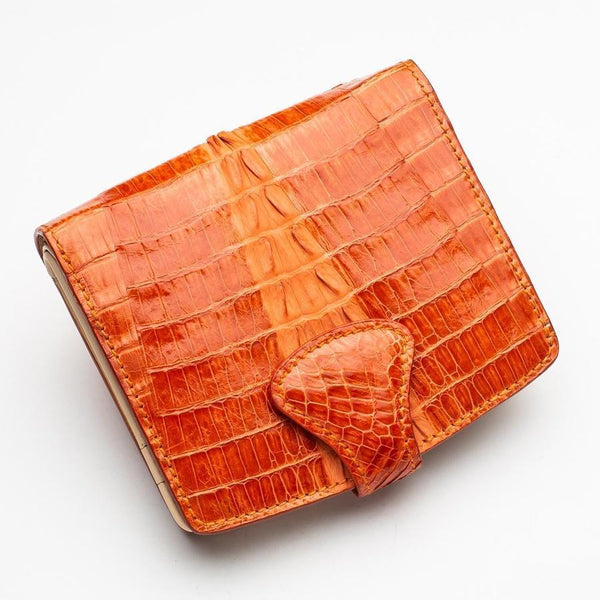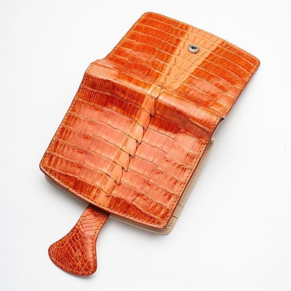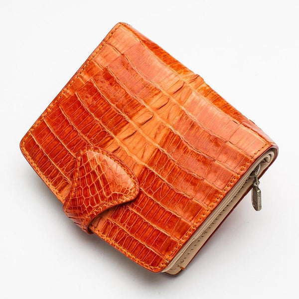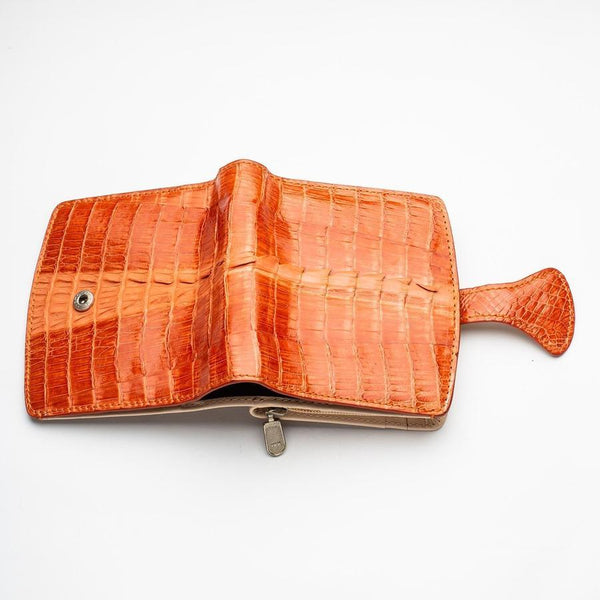Our TwoTone Orange Crocodile Skin Womens Wallet is beautifully made and crafted for years of service. Our highly talented craftsmen use a high-grade leather to stitch and create this exquisite leather good.