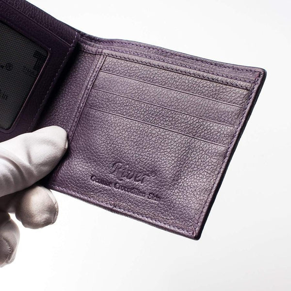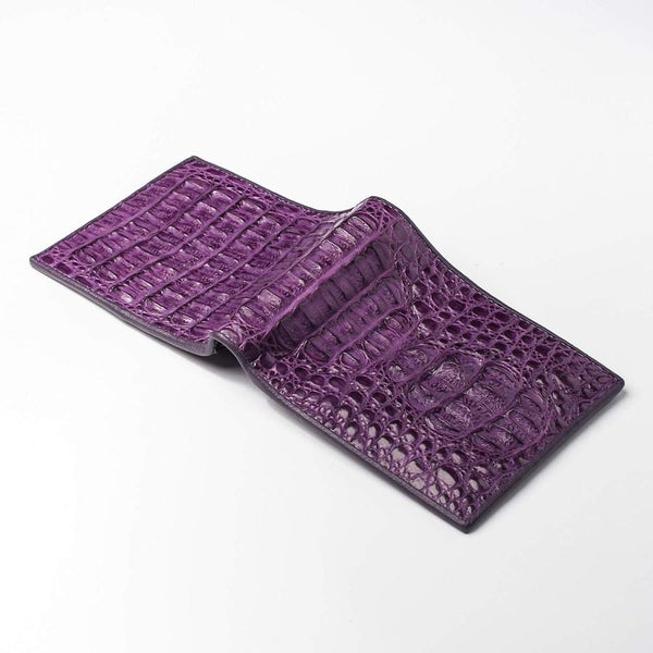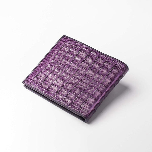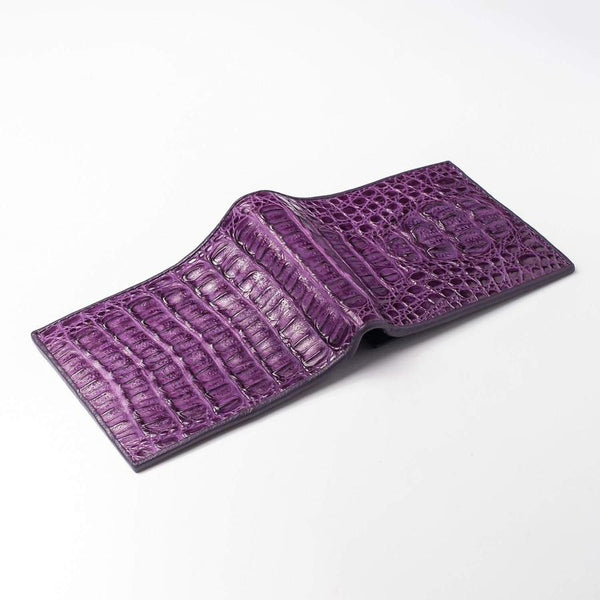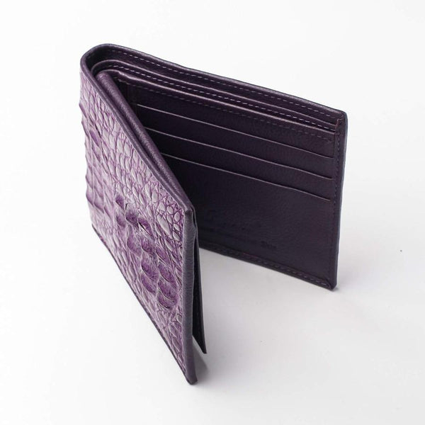 Find beauty in true craftsmanship with our Violet Genuine Crocodile Hornback Skin Men's Wallet. Utterly unique, this leather good has the durability to withstand continual use, every single day. It has been made entirely by hand and requires the hours of highly skilled craftsmen.