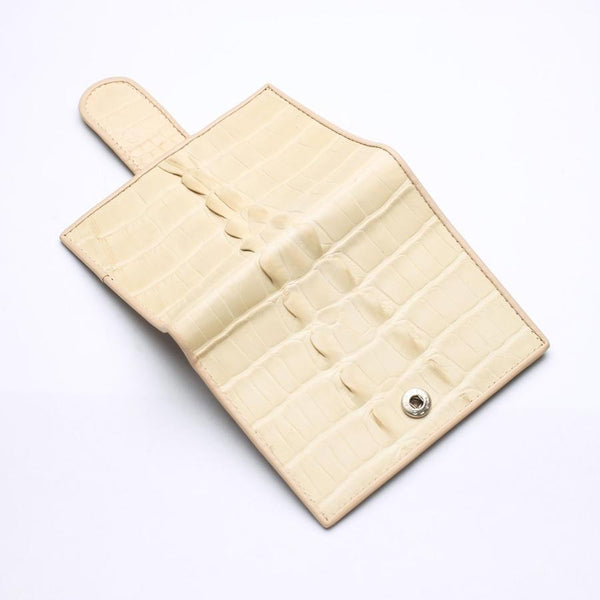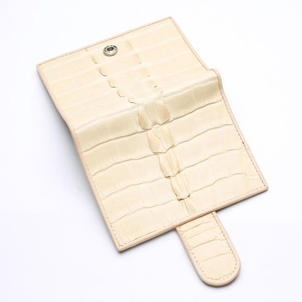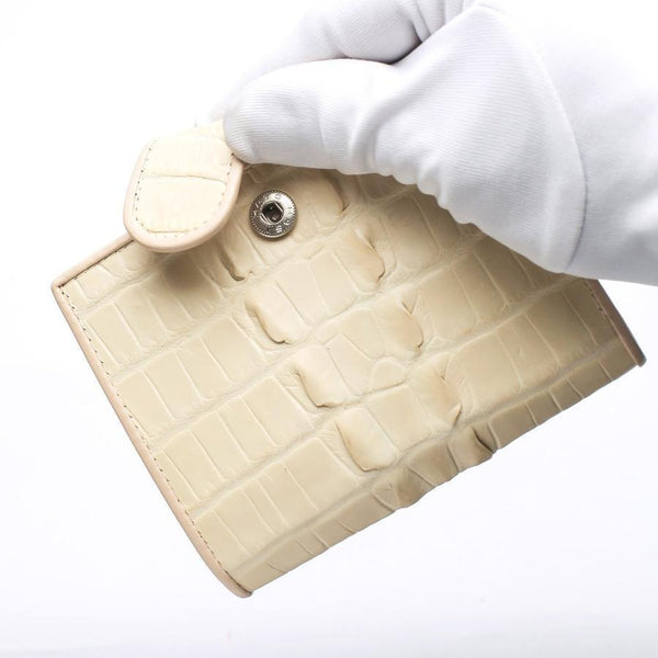 Demure and elegant, our White Pearl Crocodile Tail Women's Wallet is a piece of timeless beauty. We use the finest, natural materials to create leather goods that stand out for their quality and stylistic style.