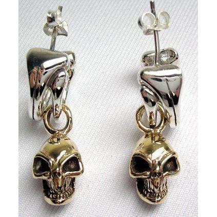 GOLD SKULL SOLID 925 STERLING SILVER MEN'S DANGLE EARRINGS NEW