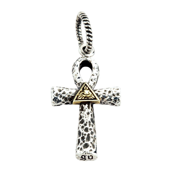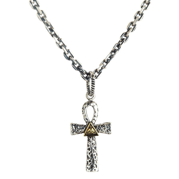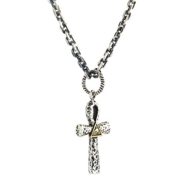 Nosso Olho Que Tudo Vê de Deus Ankh Pendant é uma dádiva de Deus para os entusiastas do gótico. Uma combinação robusta de prata clara e escura, símbolos milenares e uma vibração misteriosa tornam esta peça obrigatória.