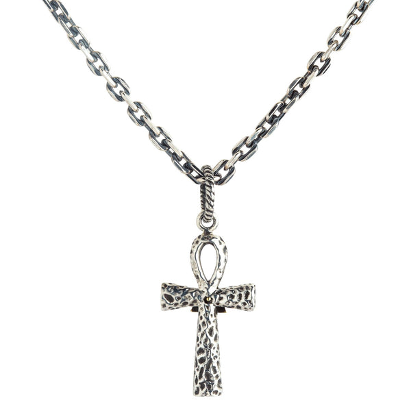 O pingente exibe a amada silhueta Ankh propositalmente envelhecida para enfatizar suas raízes que remontam a tempos imemoriais. No Egito Antigo, este símbolo representava vida, eternidade, sabedoria e proteção. Os Ankhs modernos ainda carregam esses significados e, ao mesmo tempo, estão associados a vampiros e mistério. Não importa qual significado ressoe em você, um pingente Ankh é um bem valioso, especialmente quando suas propriedades decorativas são difíceis de negar.