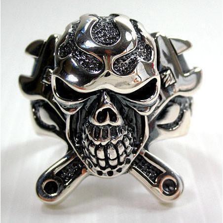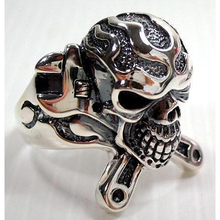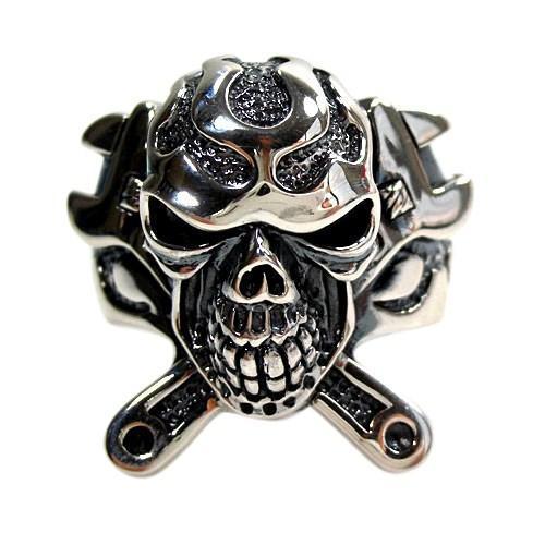 Um dos nossos designs de crânio mais intrincados, este anel perversamente impressionante é feroz e sinistro, com certeza induz pesadelos para aqueles de natureza mais delicada. Com duas chaves de boca no lugar de crossbones, esta é uma banda que vai impressionar quem gosta de mexer na sua moto ou que trabalha na área da mecânica.