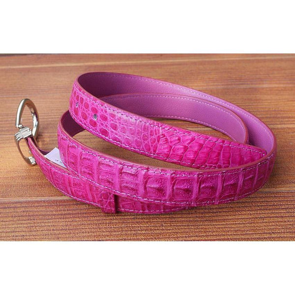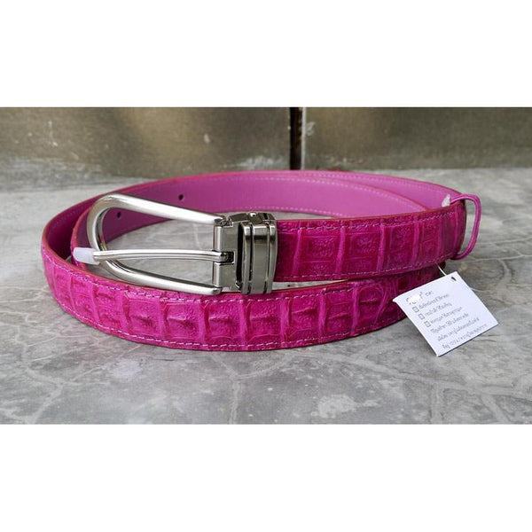 Cinto feminino em pele de crocodilo genuíno. ~ Novo na cor rosa chique.