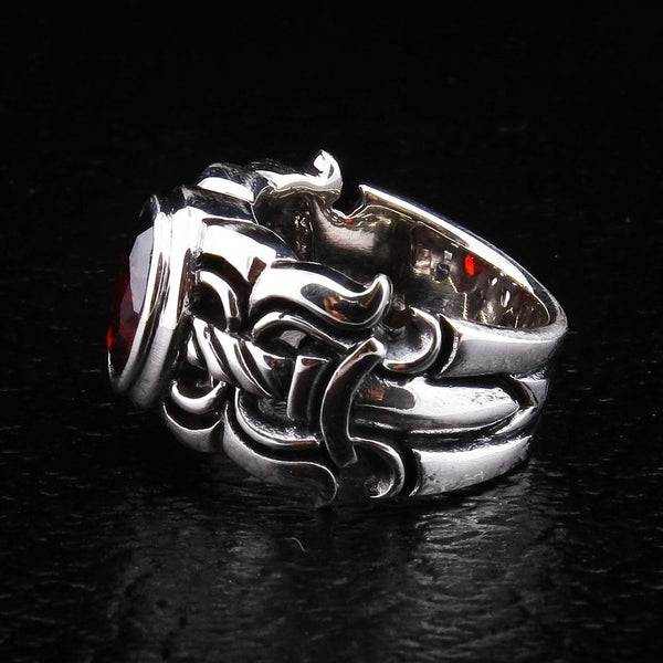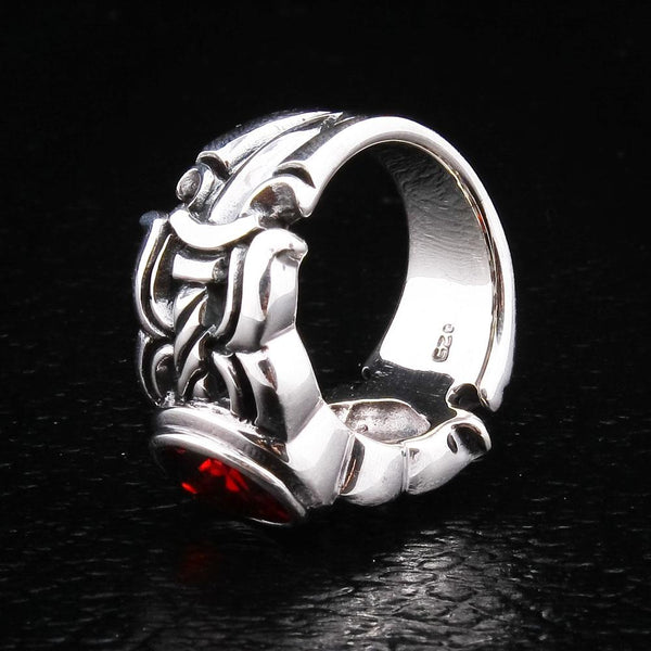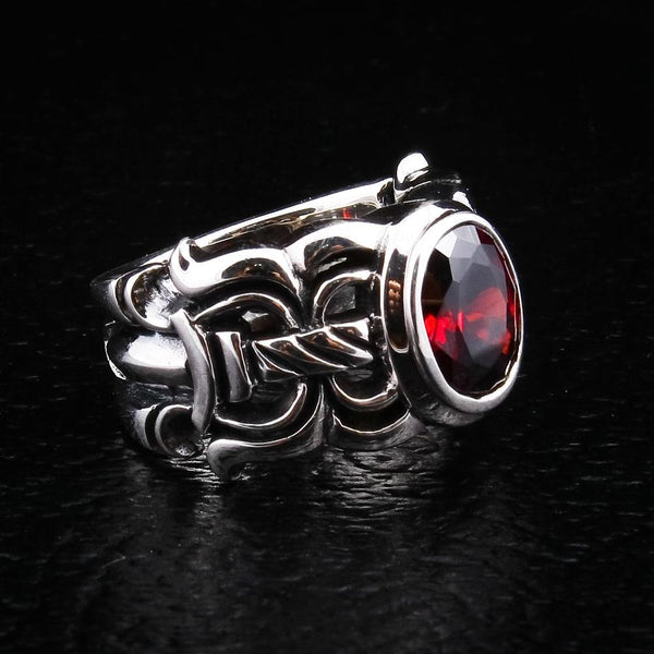 Anel medieval em prata esterlina vermelha granada