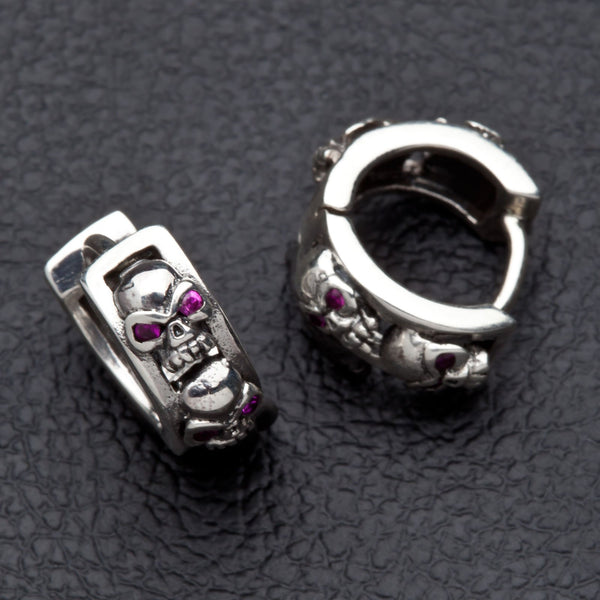 RUBY STACK SKULL STERLING SILVER HOMENS BRINCOS ~ NOVO