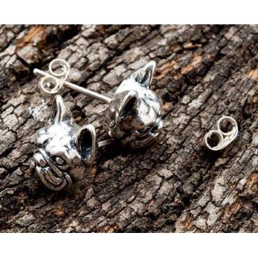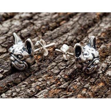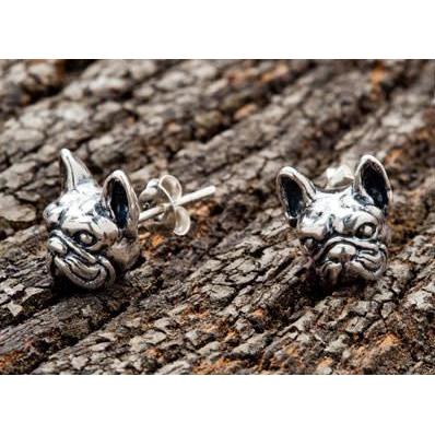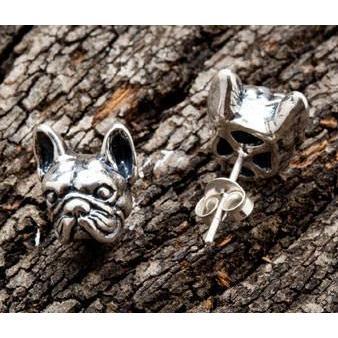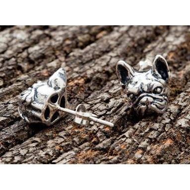 BRINCOS DE PRATA DE CABEÇA DE BULDOGUE FRANCESA 925 ~ NOVO