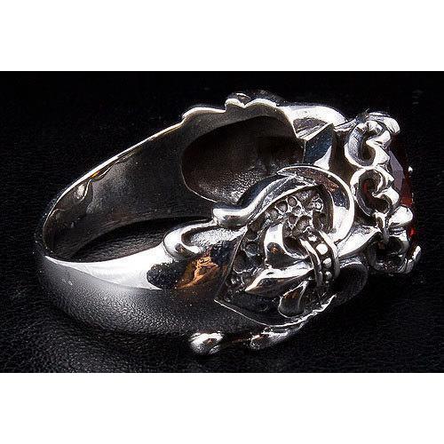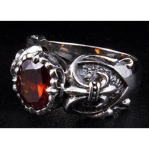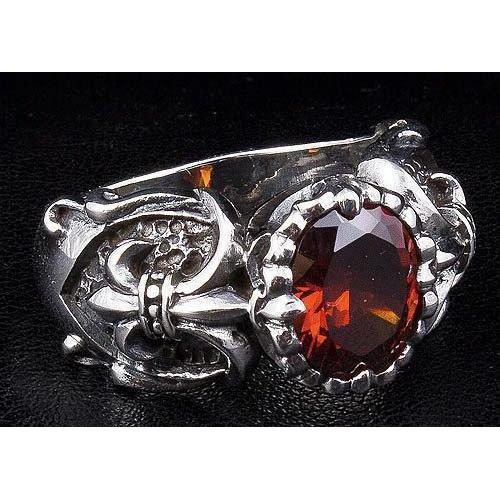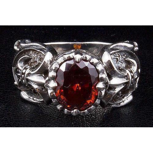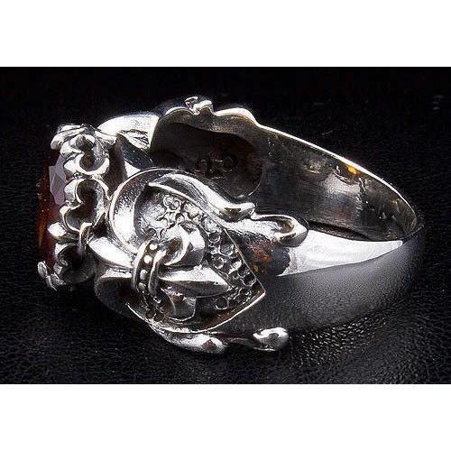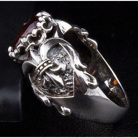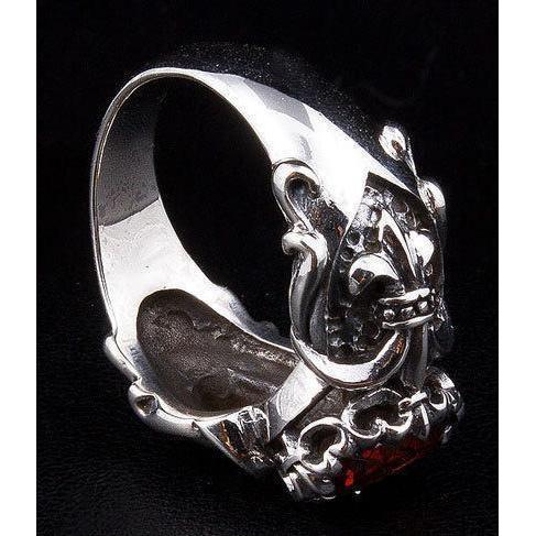 Anel Gótico Vermelho Garnet Fleur De Lis