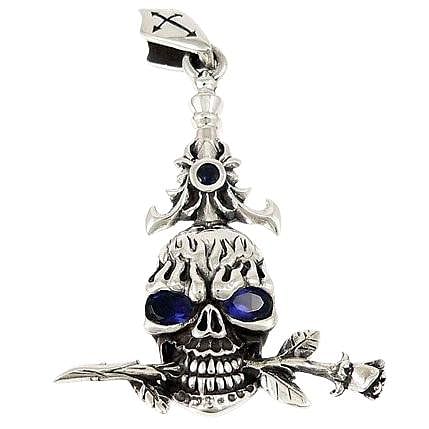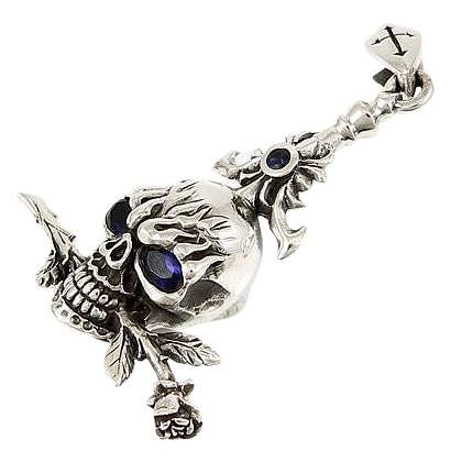 TATUAGEM SKULL & ROSE SAPPHIRE EYES MEN'S STERLING PENDANT DE PRATA ~ NOVO