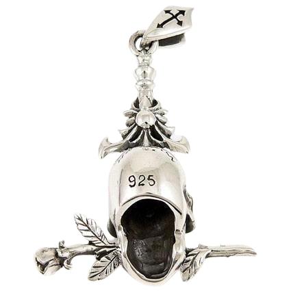 Combine com couros de proteção e seu capacete favorito - nosso Pingente de Rosa Crânio Sapphire é verdadeiramente único. Um para o homem que não tem medo de ultrapassar os limites, este acessório robusto ostenta a face rosnante de uma caveira resplandecente. Adornado com chamas furiosas e segurando uma rosa espinhosa entre os dentes, ele traz um ar de morte romântica com ele.
