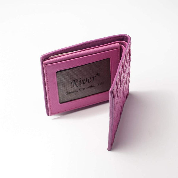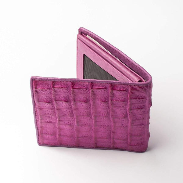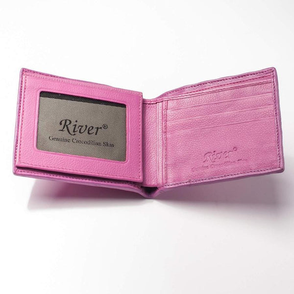 CARTEIRA DE COURO DE PELE DE CROCODILO HORNBACK DE CHOQUE ROSA GENUÍNO ~ NOVO