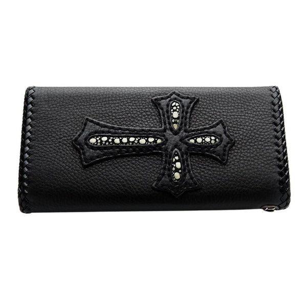 КОШЕЛЕК ИЗ КОЖИ CUSTOM BLACK STINGRAY SKIN GOTHIC CROSS BIKER ~ НОВИНКА